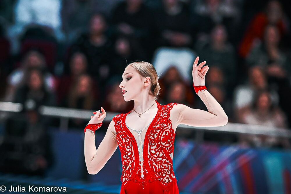 В заявке Софьи Муравьёвой значился 4 сальхов, но в программе фигуристка рисковать не стала. Она будто парит надо льдом и эмоционально отыгрывает каждую нотку. Аделия смотрелась не так уверенно", - пишет Яна Левхина.